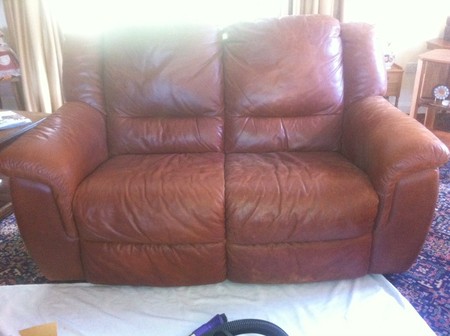 My client contacted me for a clean and condition of her Aniline leather suite. Aniline is always unpredictable with results varying, but always an improvement is made. The shots below are of the 2 seater sofa and the results were the same across the suite. Note the nice even colour and finish of the left hand side of the suite, the right hand side was yet to be attended to.